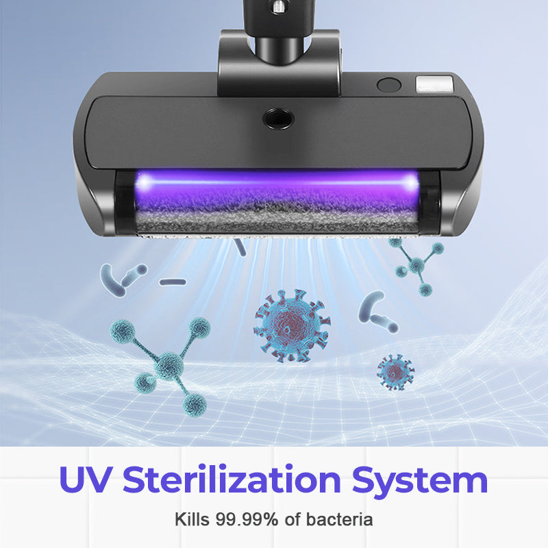 NETTOYAGE EN PROFONDEUR AVEC STÉRILISATION UV – La lampe UV intégrée élimine efficacement 99,99 % des bactéries présentes sur les sols. Elle déloge la saleté et les taches, et laisse les surfaces hygiéniques et sans danger pour les enfants et les animaux domestiques.