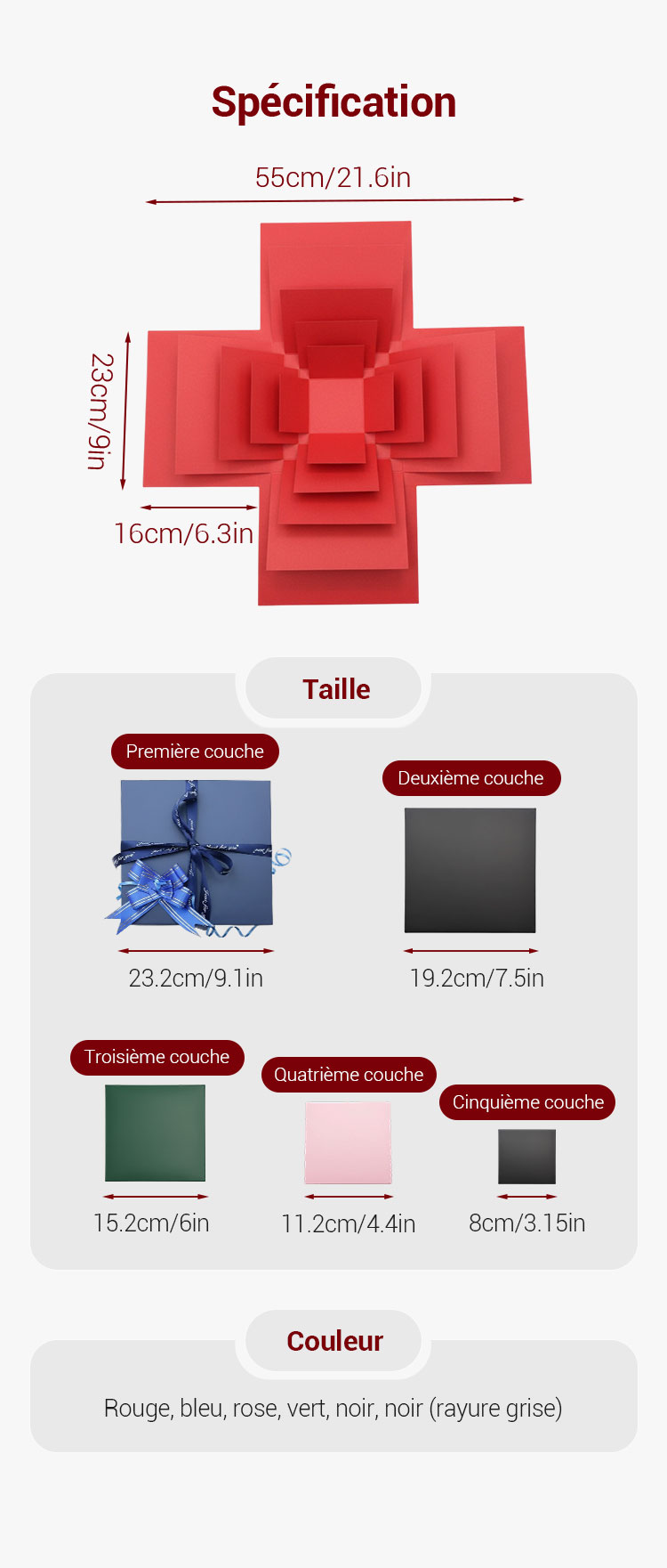 Boîte-Cadeau Surprise Explosion à 5 Couches avec Ruban