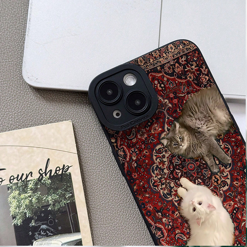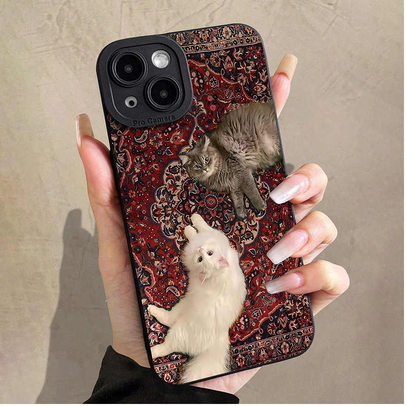 IMPRESSION D'ŒUVRE D'ART AUTHENTIQUE: L'impression photographique haute résolution capture les textures riches du tapis et la fourrure douce des chats, donnant à votre coque de téléphone une finition unique, digne d'une galerie d'art, qui se démarque des designs ordinaires.