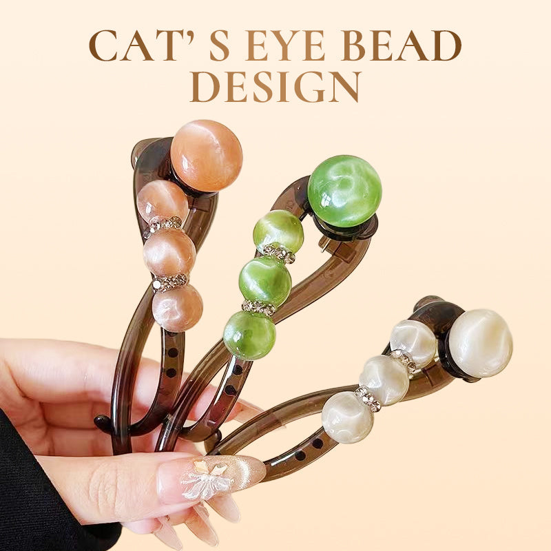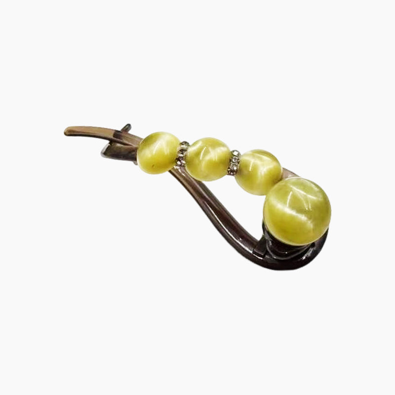 DÉTAIL DE PERLE ŒIL DE CHAT : Ornée de plusieurs perles présentant un effet œil de chat captivant, cette pince à cheveux ajoute une touche délicate et élégante à votre look. Le fini scintillant capte magnifiquement la lumière, offrant un style raffiné qui allie sans effort sophistication et usage quotidien.