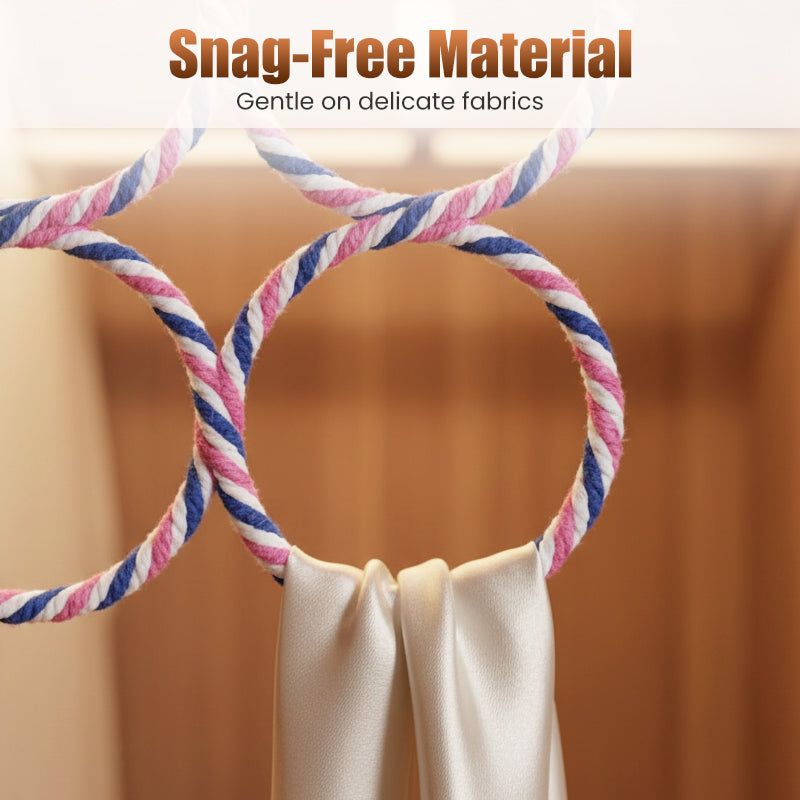 TISSU EN ROTIN DURABLE : Comprend un noyau en fer robuste recouvert de rotin lisse. Cette structure est suffisamment solide pour supporter plusieurs articles tout en étant douce pour les tissus délicats, évitant ainsi les accrocs et les plis.