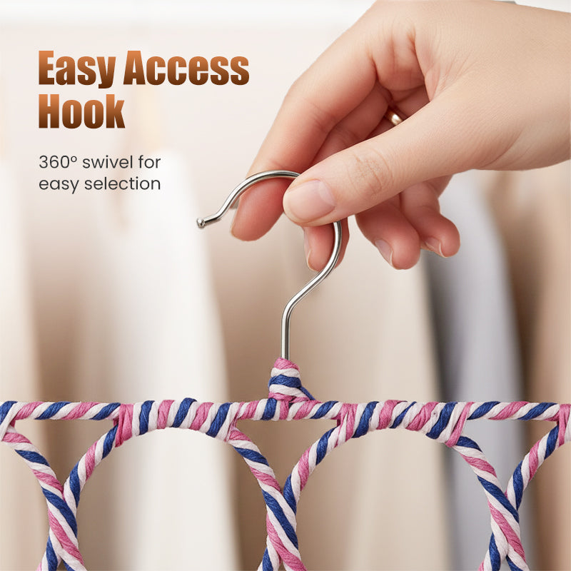 CROCHET PIVOTANT À 360° : Le crochet en acier inoxydable pivote à 360 degrés, ce qui vous permet d'accéder facilement à tous vos accessoires. Vous pouvez ainsi parcourir et sélectionner sans effort l'article parfait sans retirer le cintre de la tringle.