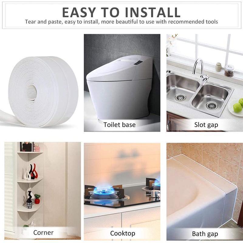 Ruban adhésif imperméable et résistant à la moisissure pour la cuisine et la salle de bain, convient aux coins, aux joints muraux, aux lavabos, aux sièges de toilettes et autres endroits. Ne laisse pas de traces, facile à nettoyer, peut être coupé selon vos besoins. Convient pour une utilisation sur les rebords inférieurs de la cuisine, les lavabos, les sièges de toilettes, les angles, etc. Une fois utilisé, votre intérieur aura l'air tout neuf et vous n'aurez plus à vous soucier des interstices qui peuvent noircir à cause de l'humidité.