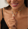 Enfilé avec de délicates perles multicolores, le collier rayonne de joie et de personnalité. Parfait pour égayer les tenues du quotidien ou ajouter une note ludique à un look classique.
