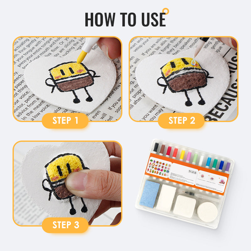 TRANSFORMATION 3D INSTANTANÉE : Ajoutez simplement de l'eau pour voir vos dessins plats se gonfler comme par magie en créations 3D douces et compressibles, offrant une expérience artistique amusante et interactive qui émerveille les enfants comme les adultes.