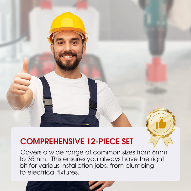 ENSEMBLE COMPLET DE 12 PIÈCES - Couvre une large gamme de tailles courantes, de 6 mm à 35 mm. Vous êtes ainsi assuré de toujours disposer du foret adapté à vos différents travaux d'installation, de la plomberie aux installations électriques.