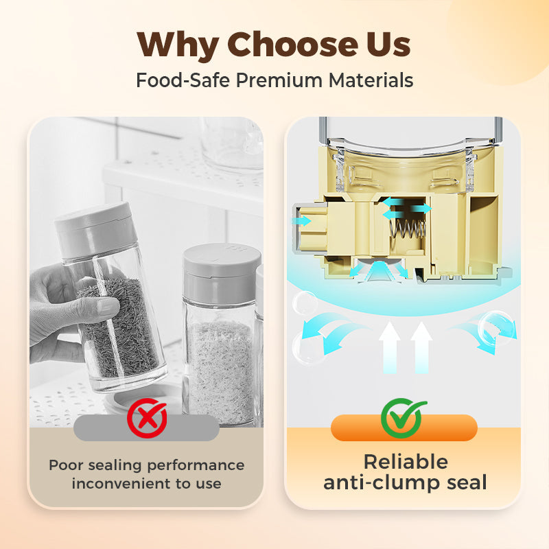 LOCK OUT MOISTURE, LOCK IN FRESHNESS - Our guardianship seal defiantly blocks humidity and kitchen oils. Spices stay flawlessly dry and free-flowing, never hardening into a frustrating brick. Experience the joy of always-ready ingredients at your fingertips.