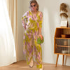 ENSEMBLE À LA MODE: Cet ensemble 2 pièces comprend un élégant haut imprimé à dos long et un pantalon ample, offrant une tenue tendance et coordonnée qui allie sans effort la mode et le confort.