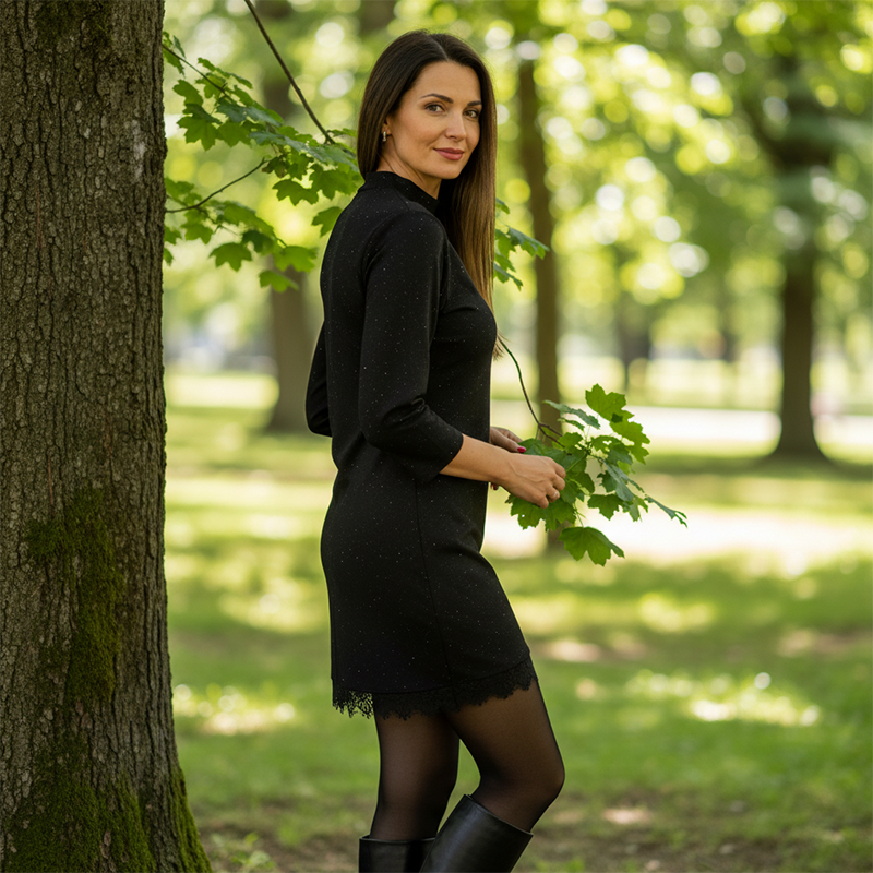 OURLET EN DENTELLE DÉLICATE - Ajoute une touche d'élégance romantique et de charme féminin à la robe noire classique, créant un détail sophistiqué et séduisant qui attire juste ce qu'il faut d'attention.