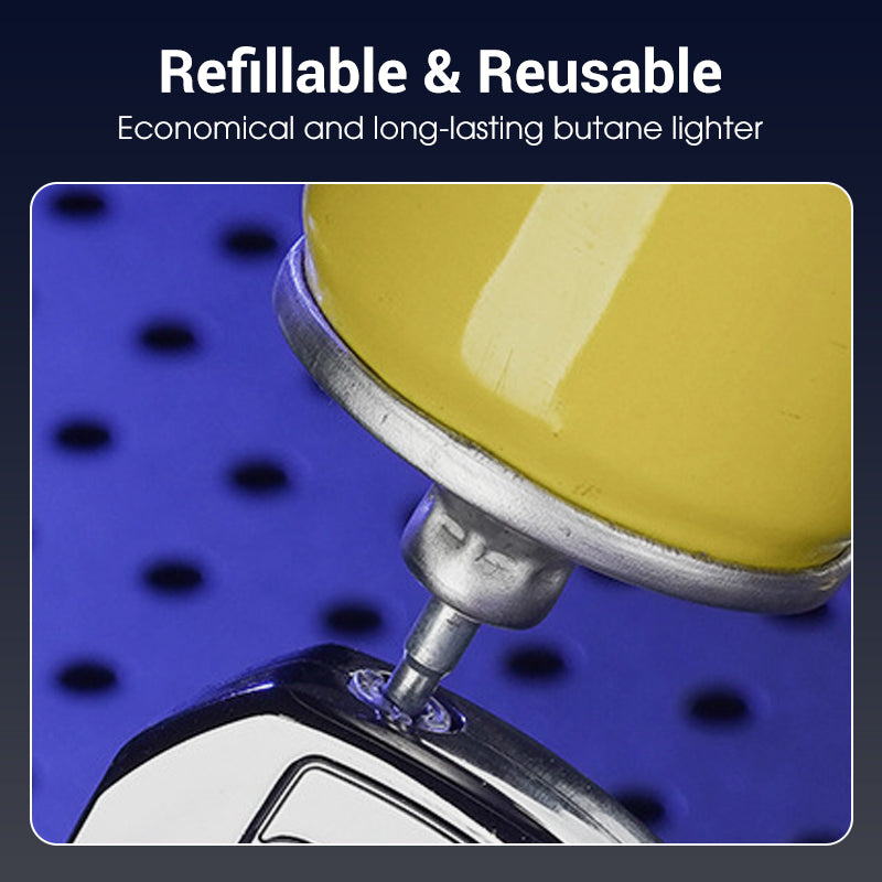 RECHARGEABLE ET RÉUTILISABLE : Conçu pour une utilisation durable, avec un réservoir de gaz rechargeable pratique, il constitue une alternative économique et plus écologique aux briquets jetables. Il suffit de le recharger avec du butane standard.