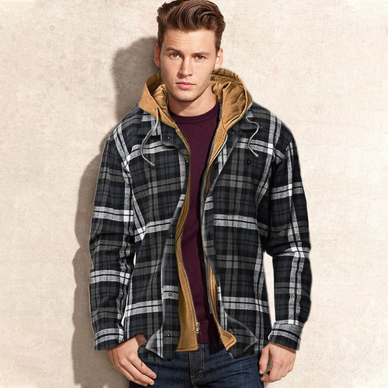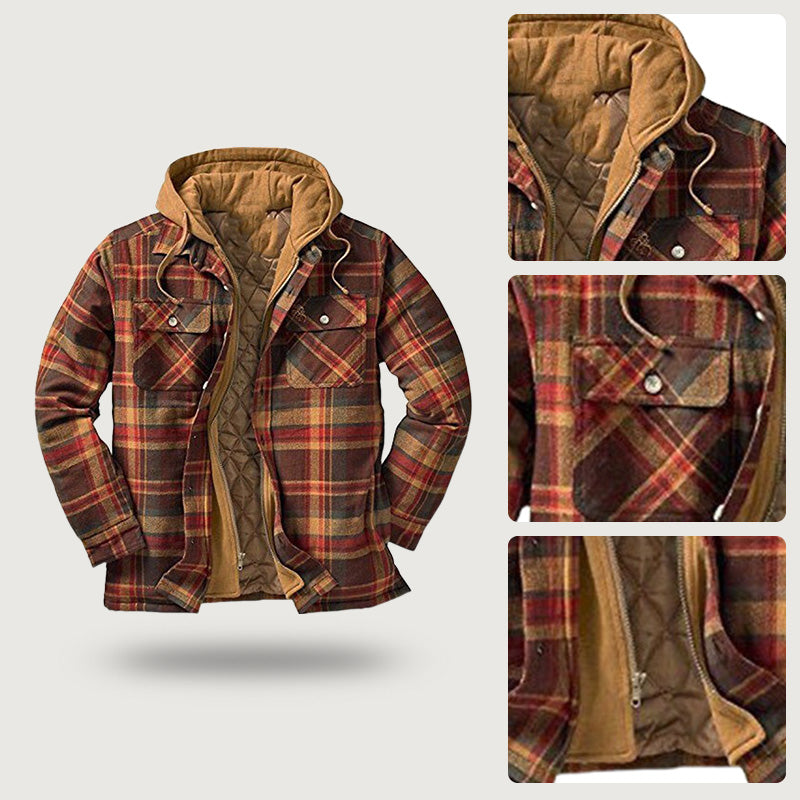 𧄠Veste à carreaux doublée matelassée avec capuche pour homme