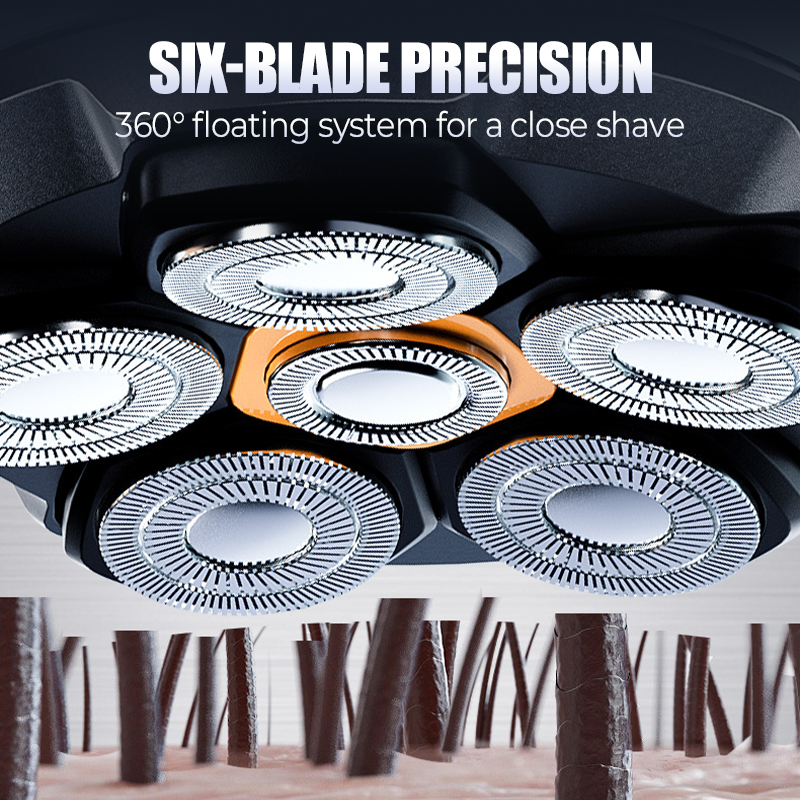 RASAGE DE PRÉCISION À 6 LAMES : Équipé de six lames ultra-tranchantes pour un rasage net et précis. Les lames fonctionnent à l'unisson pour attraper chaque poil en un seul mouvement fluide, sans tirer ni laisser de zones non rasées.
