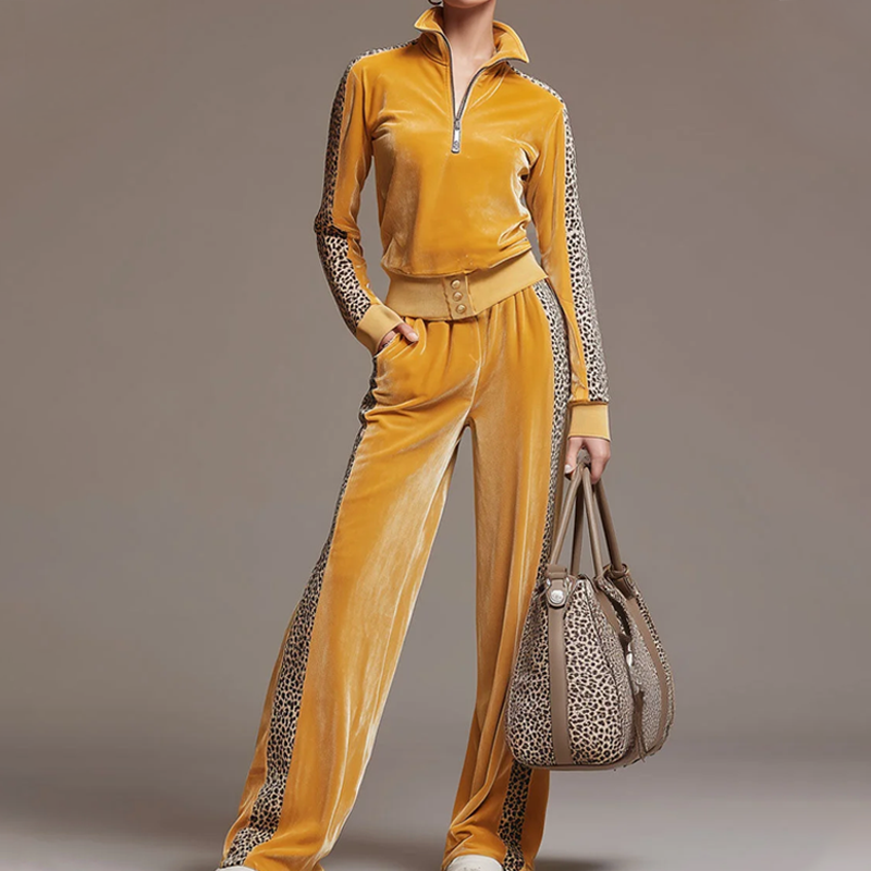 Survêtement en velours pour femme avec manches imprimées léopard
