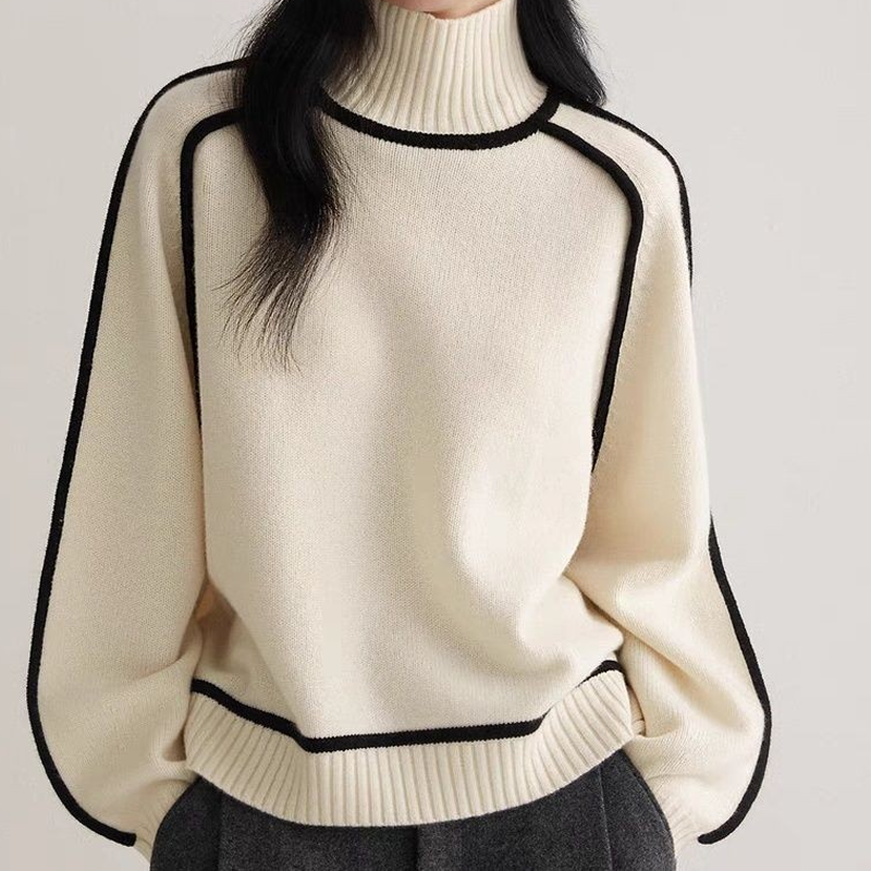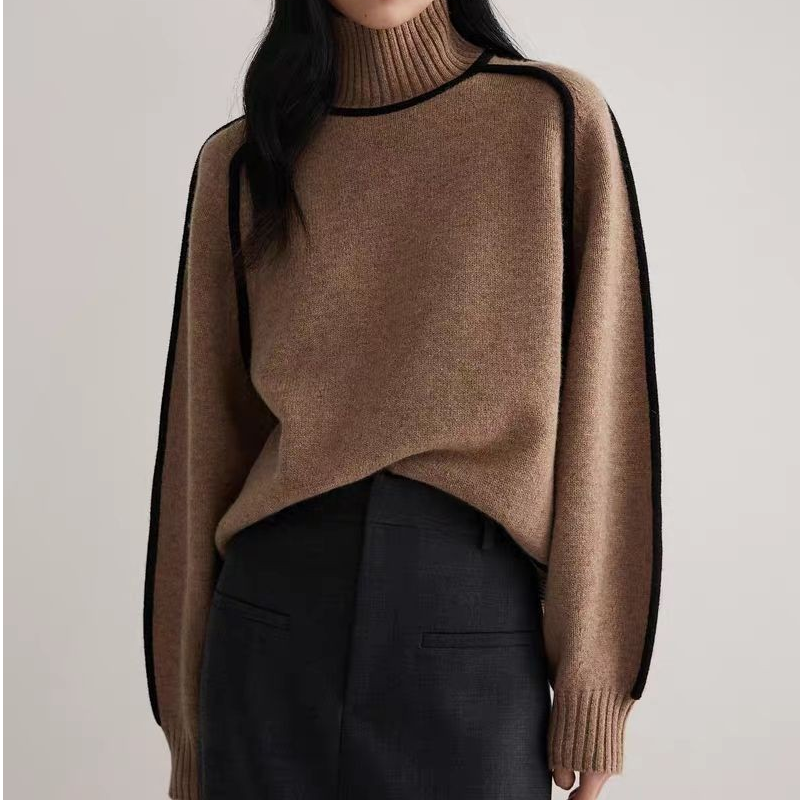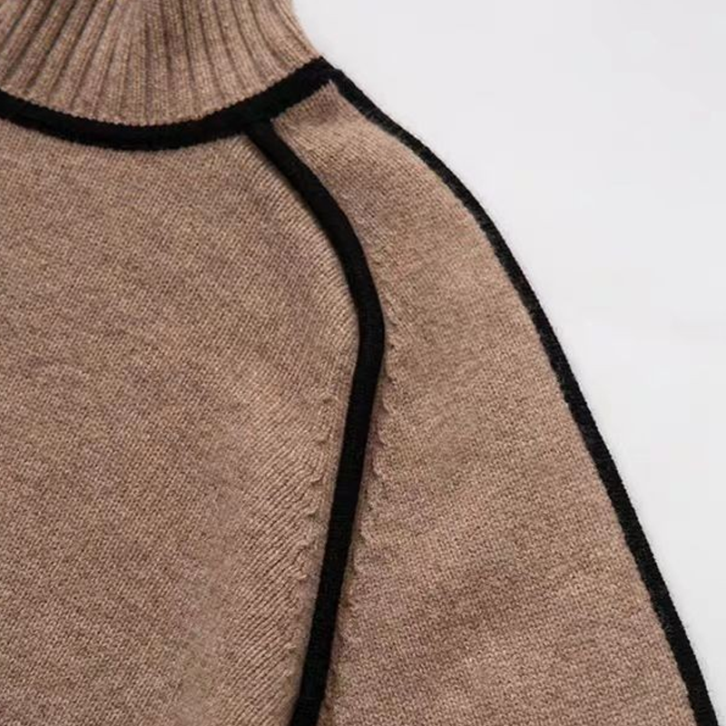 Le paquet comprend : 1 * pull à col roulé contrasté en maille côtelée pour femme