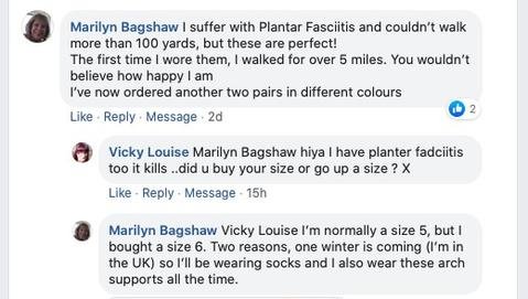 Patsy Powell : " J'ai deux paires de ces chaussures et elles sont très confortables. En plus, elles m'ont aidée à soulager ma fasciite. "